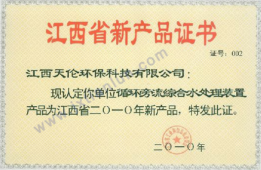 循環(huán)旁流水處理設(shè)備2010年新產(chǎn)品證書